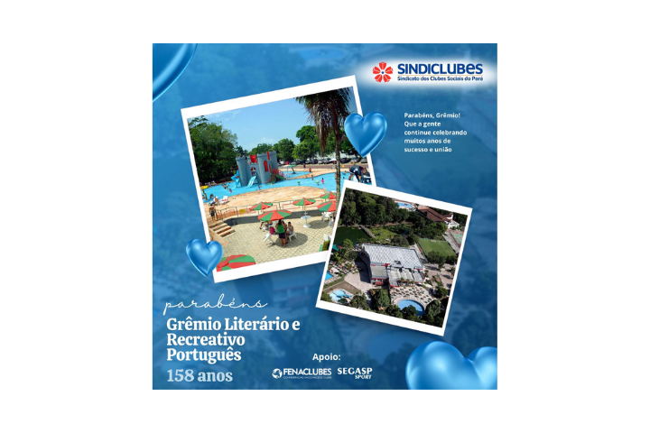 A diretoria do SINDICLUBES parabeniza o Grêmio Literário e Recreativo Português pelos seus 158 anos de história, tradição e contribuição social, esportiva e cultural.