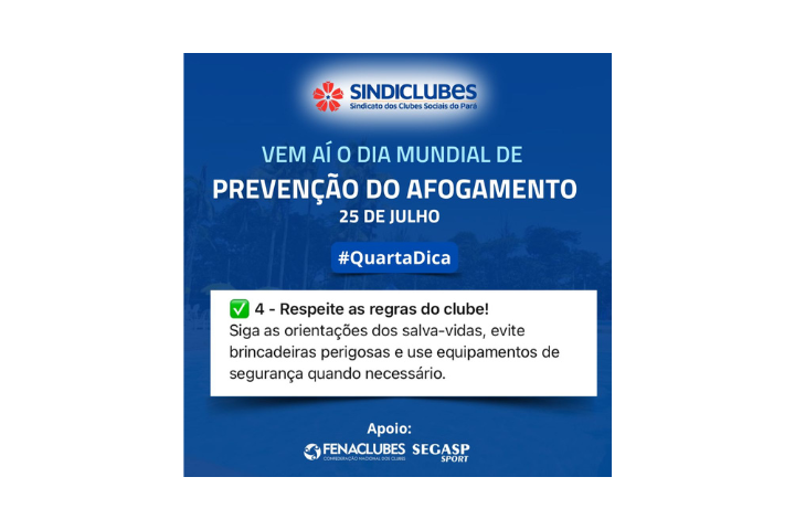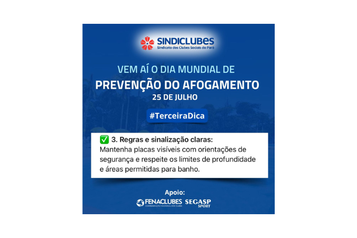 A orientação é que sejam realizadas ações de conscientização junto aos associados e visitantes, reforçando medidas de segurança aquática e prevenção de afogamentos.