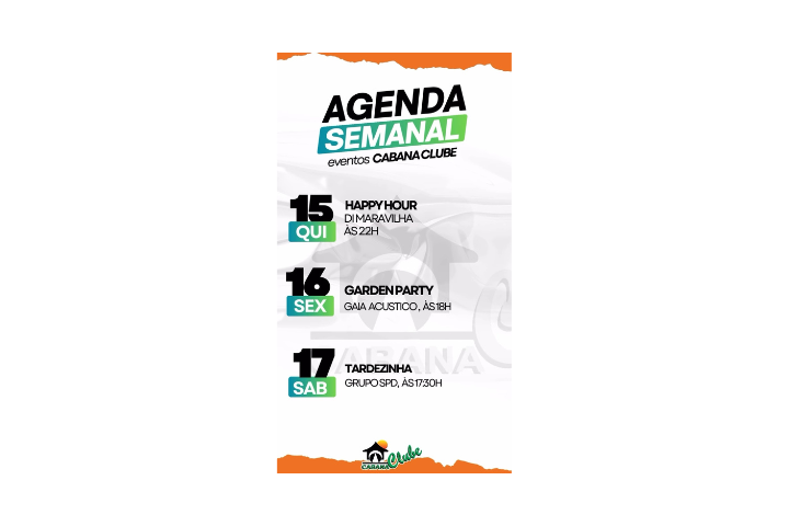 No fim de semana, a energia sobe: música, diversão, piscina e aquele astral que só o Cabana Clube tem.