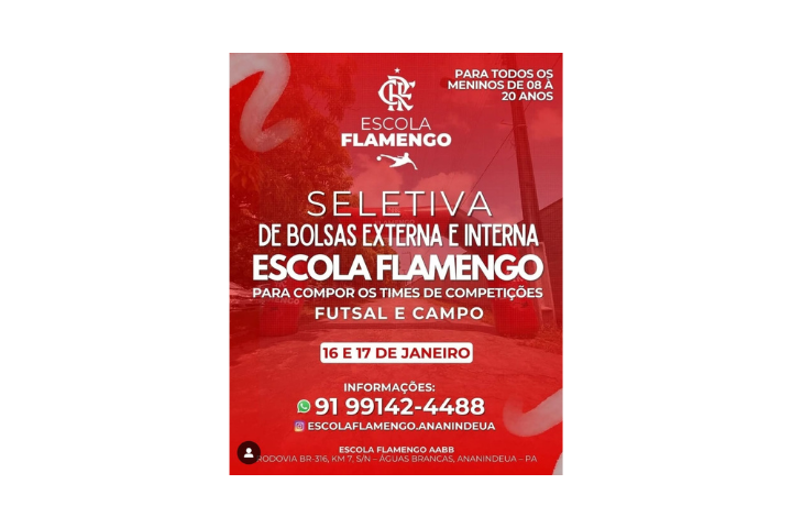 Vem aí a SELETIVA OFICIAL DA ESCOLA FLAMENGO para bolsas internas e externas.