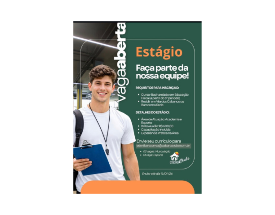 OPORTUNIDADE DE ESTÁGIO PARA FUTUROS EDUCADORES FÍSICOS! CABANA CLUBE