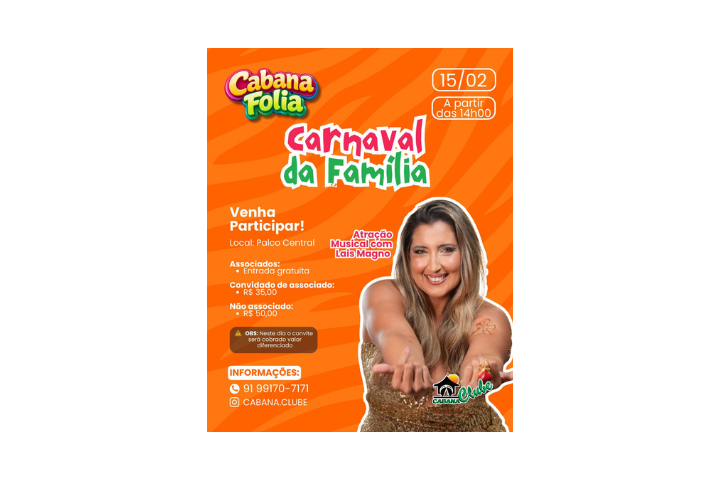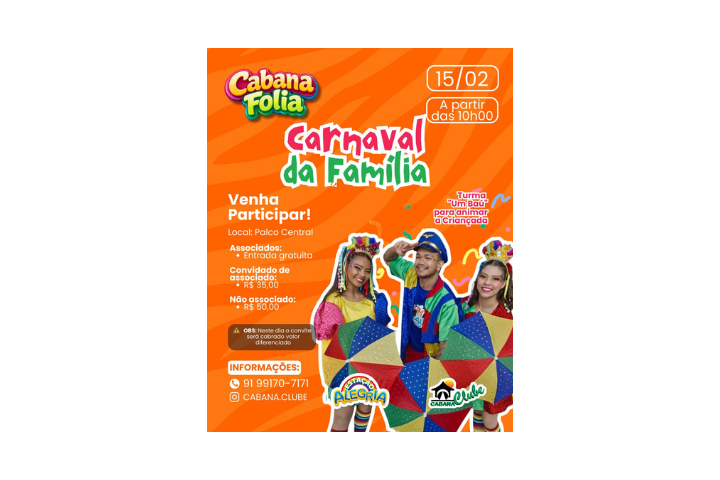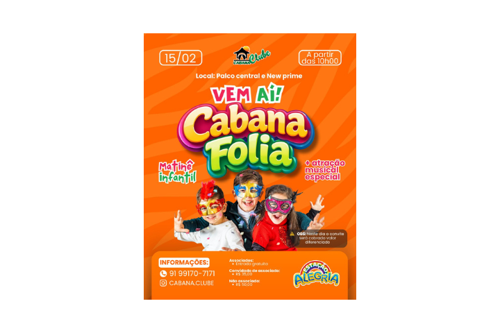 O Cabana Clube convida você e sua família para viver um dia de muita alegria, diversão e tradição no Cabana Folia – Carnaval da Família.