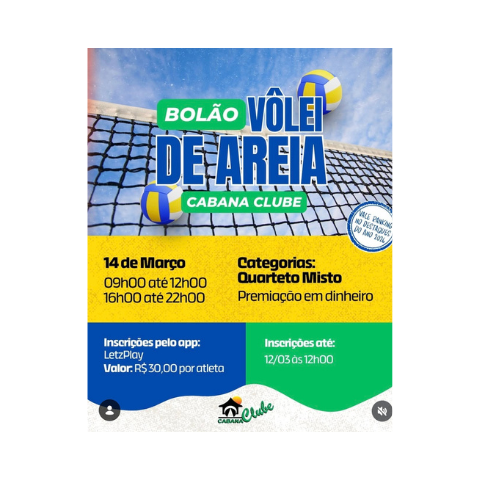 BOLÃO DE VÔLEI DE AREIA NO CABANA CLUBE.