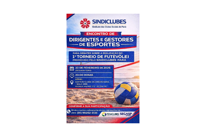 Vai rolar um encontro super importante para debater o 1º Torneio de Futevôlei promovido pelo Sindiclubes Pará!