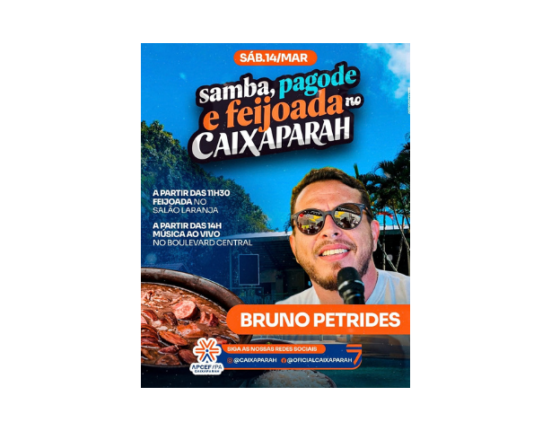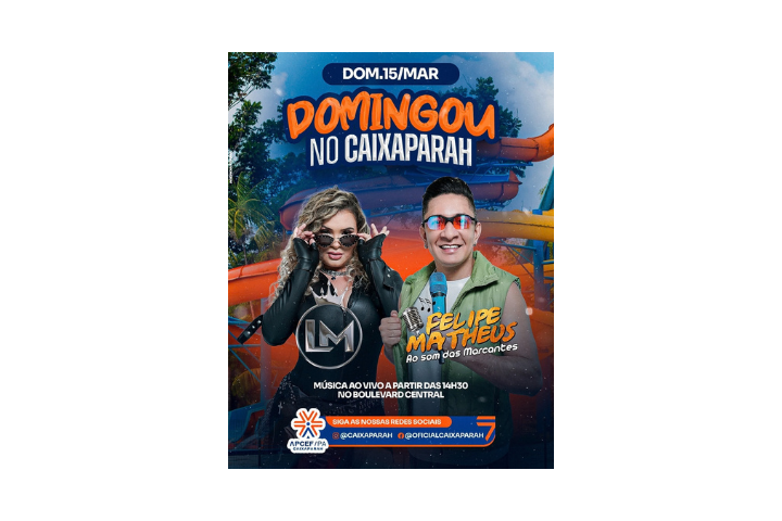 A partir das 14h30, o som fica por conta de LAUDIANE MAIA & FELIPE MATHEUS, trazendo o melhor do repertório ao vivo para embalar nossos sócios e amigos.