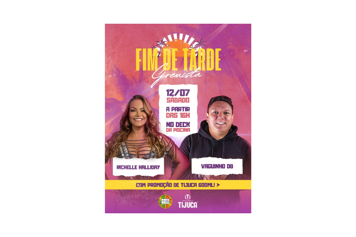 Dia 12 de julho (sábado), a partir das 16h, a sede campestre do Grêmio vai se transformar no cenário perfeito para o Fim de Tarde Gremista. Um evento com clima vibrante e muita música, perfeito para aproveitar o verão paraense no clube social mais verde da cidade.