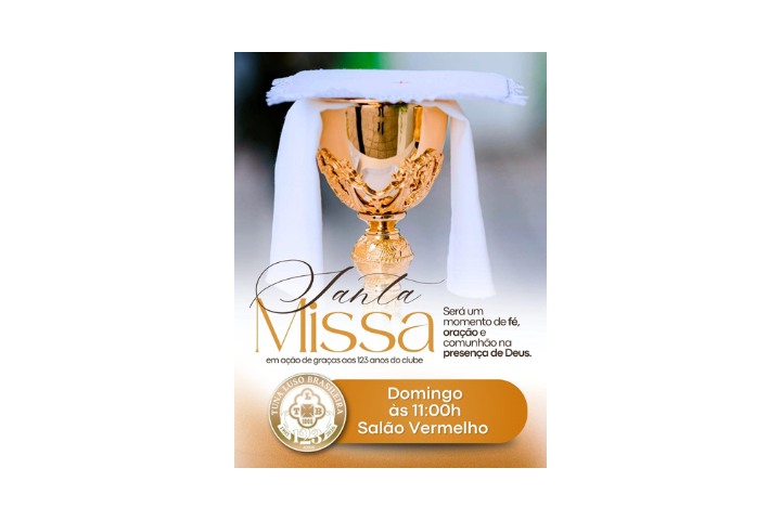 O Clube Tuna Luso Brasileira tem a honra de convidar seus estimados sócios e familiares para um momento especial de fé, união e gratidão: a Santa Missa em ação de graças pelos 123 anos do Clube.
