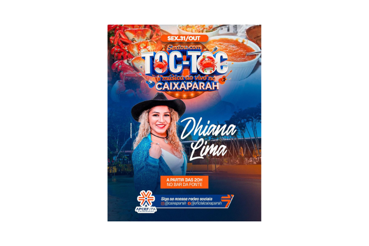 Vem curtir música ao vivo com DHIANA LIMA , saborear caranguejo Toc Toc no capricho e brindar com os drinks mais refrescantes.