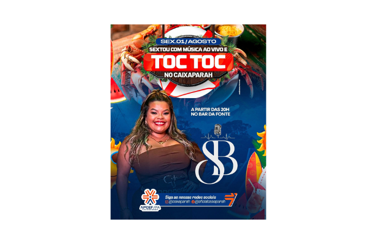 Vem curtir música ao vivo com SUELEN BLACK, saborear caranguejo Toc Toc no capricho e brindar com os drinks mais refrescantes.