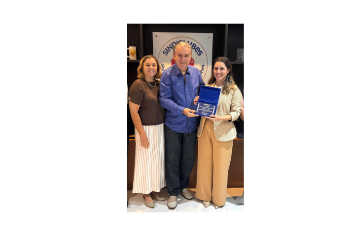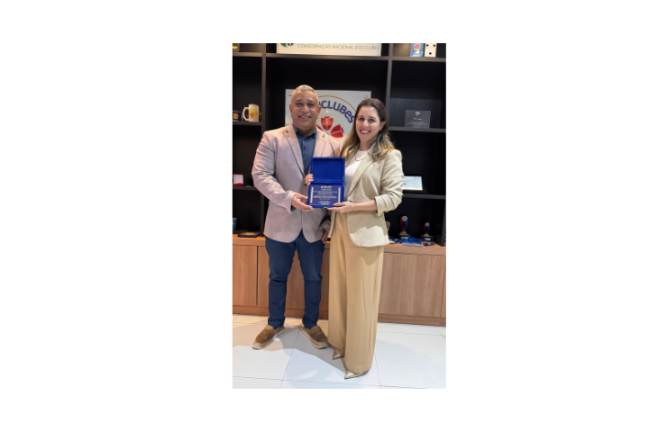 Juntamente com o Diretor Jurídico Ofir Nobre, o Presidente Salatiel Campos entregou um certificado de reconhecimento e gratidão à Drª Gabrielle Maués pelo empenho em trazer um tema tão importante para contribuir com a gestão dos clubes paraenses.