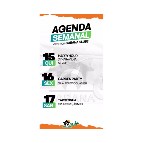 Agenda semanal do Cabana Clube.