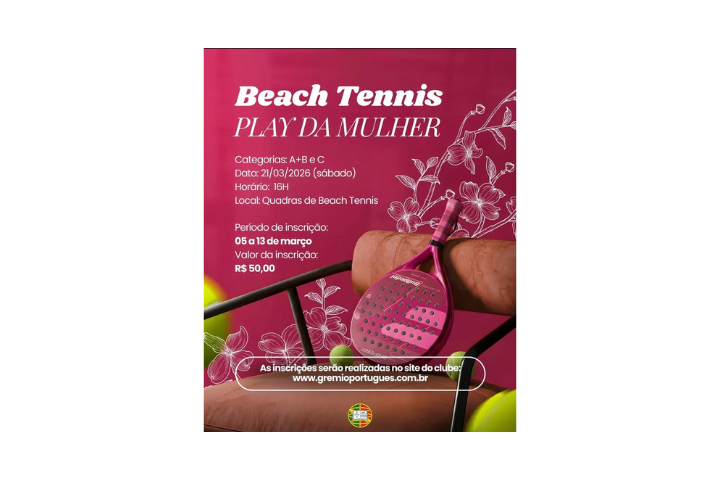 O Grêmio Português promoverá o torneio Play da Mulher, voltado à participação feminina nas quadras de Beach Tennis do clube.